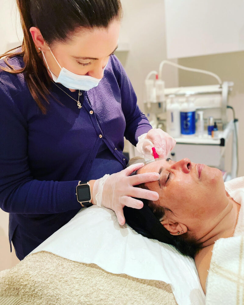 Microdermabrasion is a term used to describe the technique of abrading the skin to remove a layer of dead skin cells. A jet of fine crystals is vacuumed across the skin which leaves the skin looking brighter and feeling smoother.