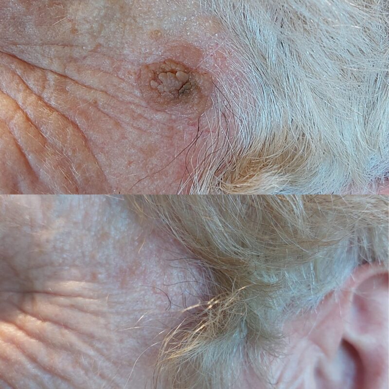 We only treat warts on the face or hands. The wart is curetted and then cautery or a hyfrecator is used to stop any bleeding. A scab forms that may last for 7-10 days and then hopefully there will no longer be a wart. However, in some cases, 1-3 treatments may be necessary for clearance of the wart.